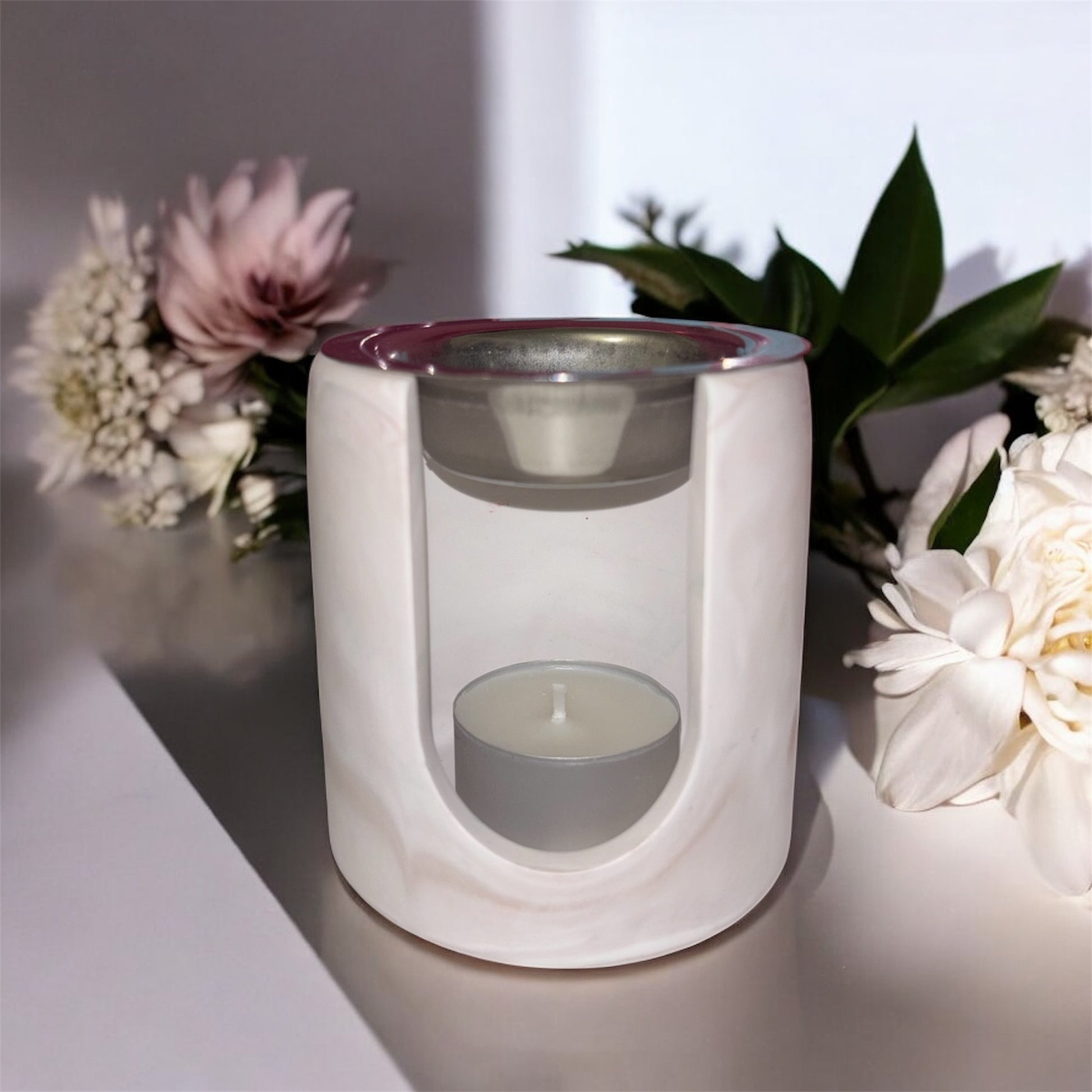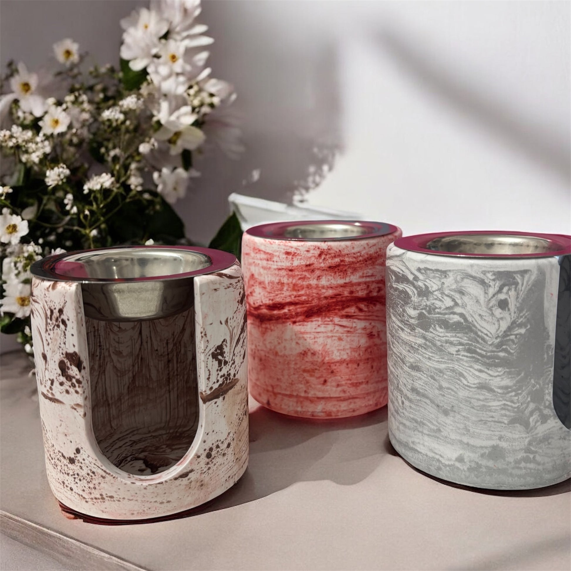 Brûleur effet marbré, unique et personnalisé. La couleur et les finitions peuvent varier légèrement par rapport aux photos, faisant de chaque pièce une création exclusive et originale.
